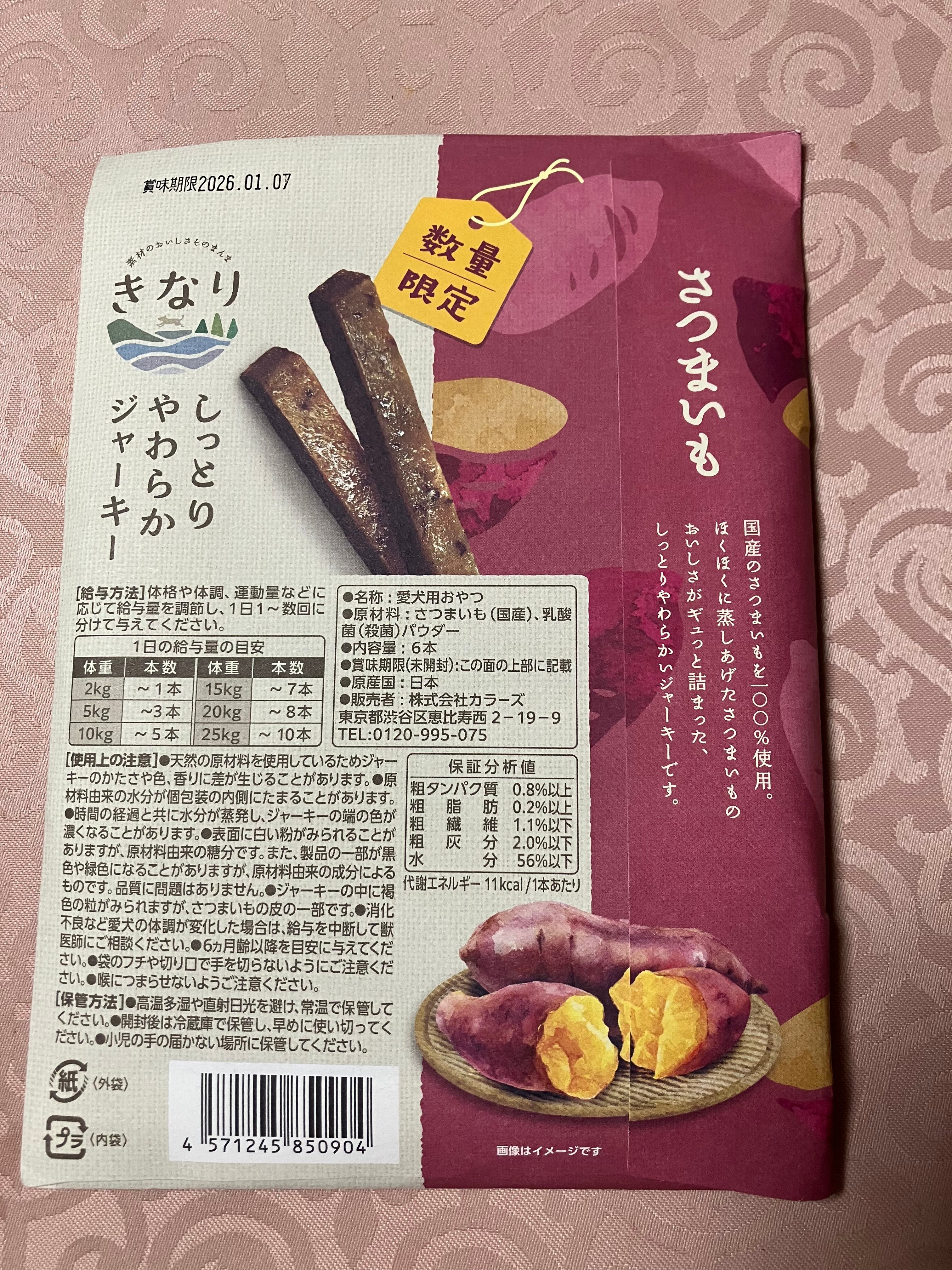 愛犬用おやつ きなり しっとりやわらかジャーキー さつまいも