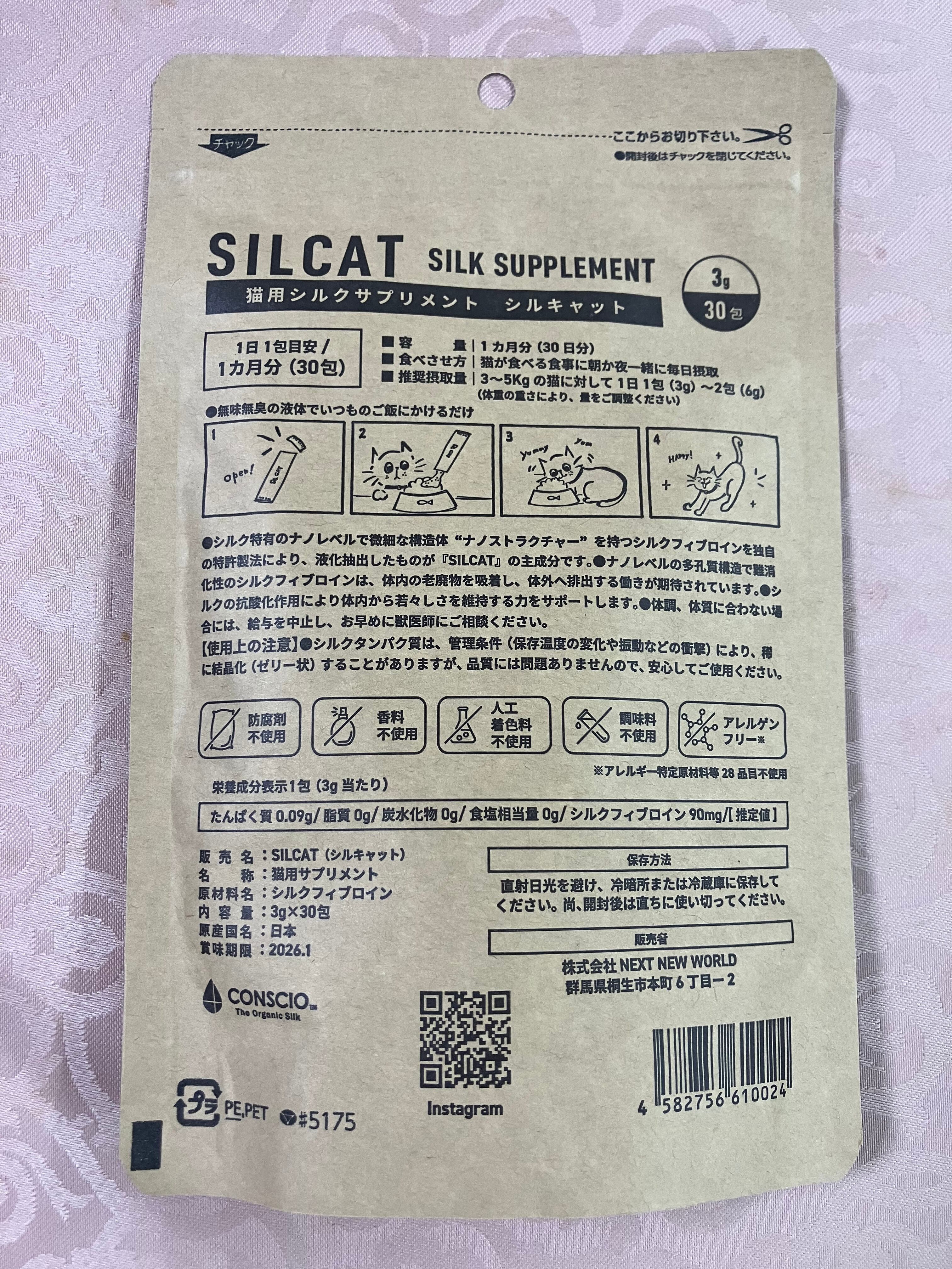 天然シルク成分補給で愛猫の健康維持に♡